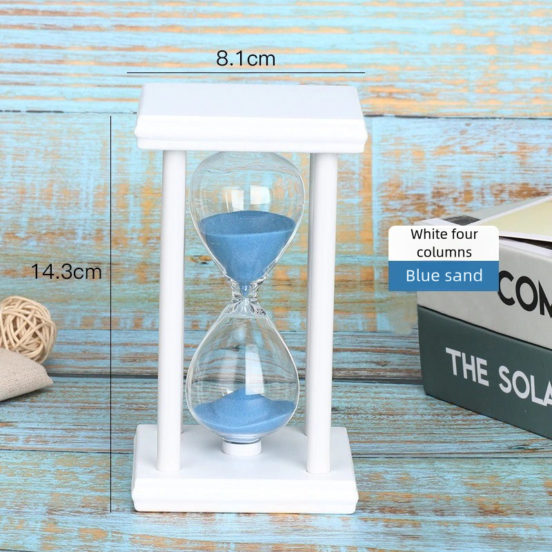 This is a wooden 30-minute wooden hourglass, which can also be made into the same hourglass with less than 30 minutes. The sand color, hourglass time and wood color can be customized according to the customer's requirements. The wood has two square surfaces that can be printed or engraved with LOGO or other text or patterns, which is very suitable for decoration on office desks or home study rooms.