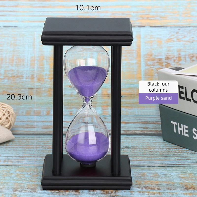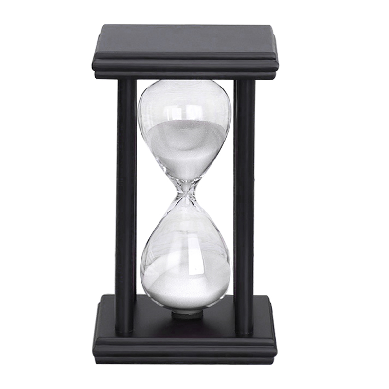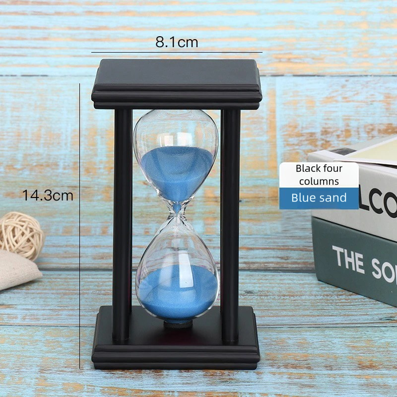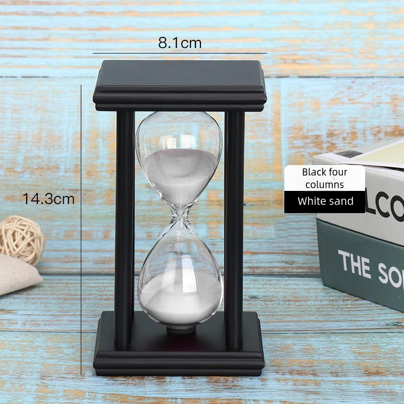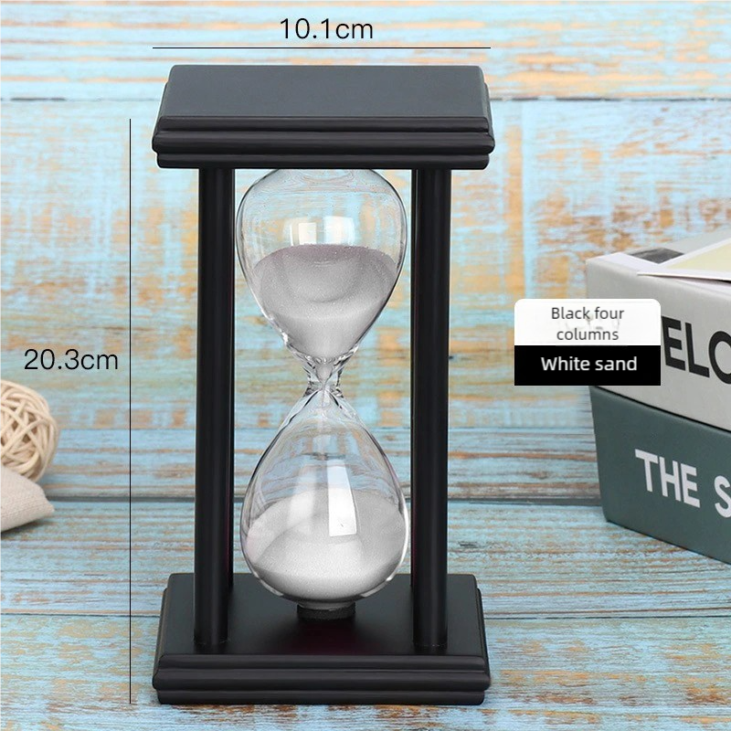 This is a wooden 30-minute wooden hourglass, which can also be made into the same hourglass with less than 30 minutes. The sand color, hourglass time and wood color can be customized according to the customer's requirements. The wood has two square surfaces that can be printed or engraved with LOGO or other text or patterns, which is very suitable for decoration on office desks or home study rooms.